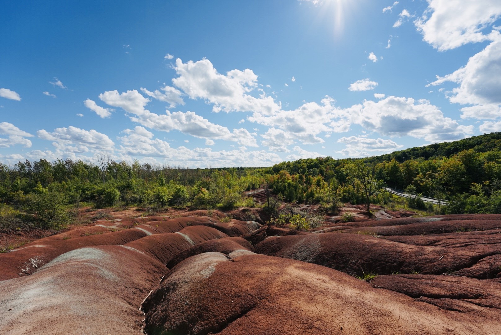 Captured at the Cheltenham Badlands, Ontario trail with low angle shot.